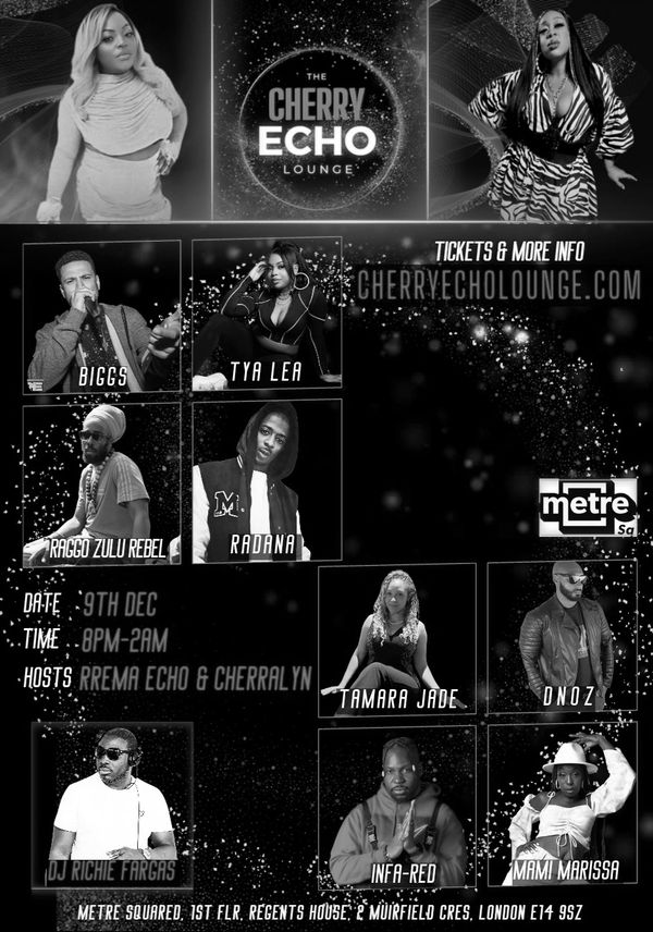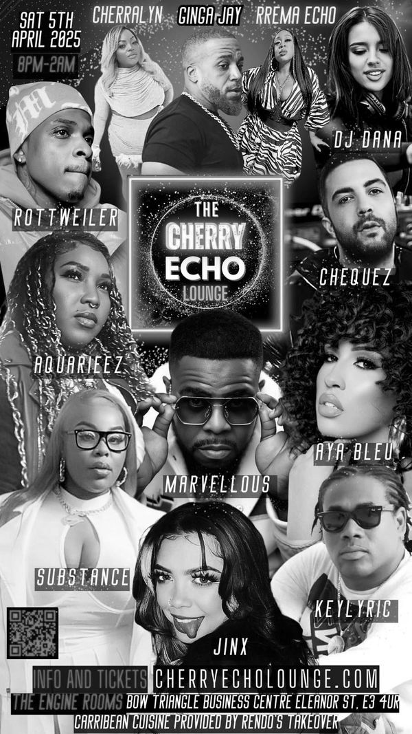 Rrema Echo and Cherralyn are excited to invite you to the relaunch of the Cherry Echo Lounge at our new location in Bow - The Engine Rooms with special guest host Comedian, Actor, Influencer and Social Media Star Ginga Jay and holding down the vibes with music on the night from DJ Terror.