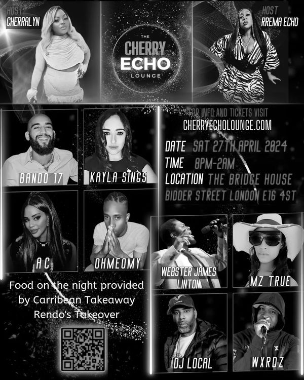 Rrema Echo and Cherralyn are excited to invite you back to the Cherry Echo Lounge at our home in Bow β The Engine Rooms. This special night will be filled with live performances, comedy, games, good music, prizes, surprises, and unforgettable vibes.